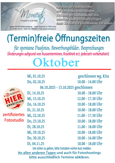 Fotostudio Moments Friedensstraße 13 37308 Geismar